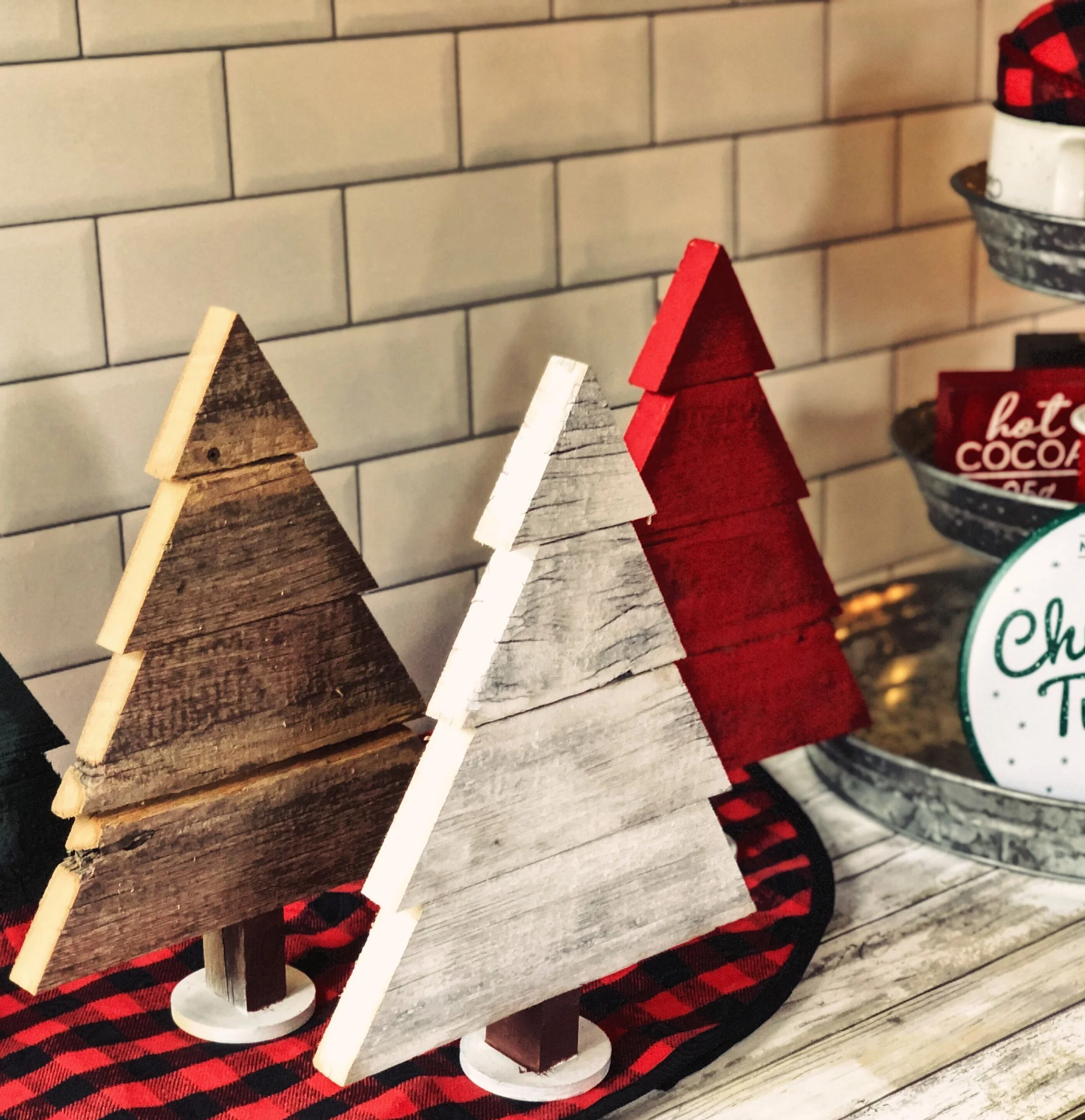 Rustic Wooden Christmas Trees Made from Reclaimed WI Barnwood in assorted sizes and colors - Holiday Decor